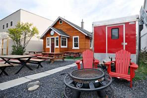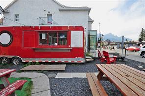 Food truck + yard venue on Main Street Canmore - this offering is for an assignment of leasehold interest and business assets which includes a 32-ft 2014 food truck trailer (converted 2017), yard improvements, and sub-tenant agreement(s). The truck features an amazing, fully loaded commercial kitchen, complete with 8-ft hood, a flat-top grill with oven below, two large gas burners, a six-burner grated grill, two deep fryers with four baskets, plus ample refrigeration, prep, storage, and working space to support a variety of culinary delights and/or artists. Situated on a 6,587sf lot, the outdoor yard is tucked behind the original 915sf, 1910 cabin with both front street and back alley access; set for gathering, dining, and events with two commercial pergolas, a stage, and multiple seating areas. The yard offers a seasonal multi-pad layout for the food truck, one existing sea can sub-tenant (confirmed and wanting to stay), and (un-tenanted) second sea can operating as a licensed bar could be included.