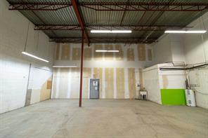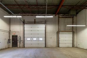 The 2,387 SF warehouse offers a functional wide layout (approximately 39 ft wide x 65 ft deep) with 18 ft clear ceiling height, 100 amps of power (TBV), one drive-in door (12 ft W x 14 ft H), and one dock door (8 ft W x 10 ft H).