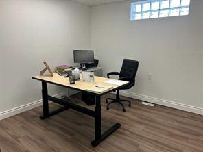 Comfortable office space or small business outlet. Friendly reception area with a built in reception desk and drawers etc. Corner kitchen with sink and bar fridge space. 3 separate offices have glass block windows. A storage room may be available to a longer term tenant. Ladies and mens bathrooms are in the common hallway area. Ample street and private parking areas for common tenat use.