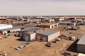 The gravel yard area directly behind the bay is included, offering ample exterior space with the accommodation of a clear laneway for through traffic. The site is fully fenced and gated with lots of shared paved parking at the front of the building for staff and visitors.