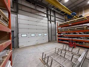 The bay features steel construction with ceiling heights of 21’, three 16’x16’ overhead doors with drive-through, floor drain, two overhead heaters, LED lighting and an exhaust system that supports active shop use. Power supply includes 400-amp to the building with 225-amp of 3-phase power allocated to the bay. *The crane system is property of the current tenant and not included.