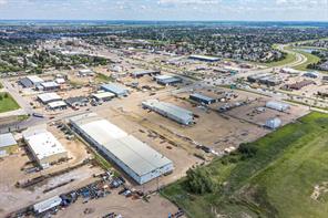 Prime location for this Lloydminster industrial property. 32,232 square feet available just north of 44th Street (HWY 16). Featuring 21,784 square feet of shop and 10,448 square feet of office. The shop space measures 100’ wide by approximately 200’ deep and includes 3 – 12’x16’(WXH) overhead doors, 3 phase 4 wire 600 amp 347 volt power, bridge crane, radiant heat and 23’6 ceiling height at the centre and 19’8 at the eaves. The 2 levels of office space include multiple offices and washrooms, board rooms, kitchen areas and reception on each floor and is serviced by forced air heating and central A/C. Fenced compound with mainly paved parking area and yard space. Access to the yard space is shared with the tenant occupying the back part of the building.