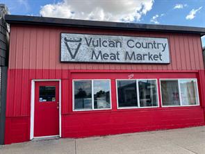 Excellent main street building in the town of Vulcan!!! Was formally operated as a custom cutting and mobile butcher shop but could be easily converted to what ever business you desired. This building is just shy of 2400 sqft and has numerous upgrades which include thickened concrete and upgraded electrical. Could easily be turned back into a butcher shop as the demand was huge in the area. The infrastructure is all there including a wash room, loads of cooler space for hanging the meat, a freezer and was all carefully designed to hang on a rail system to make moving the carcasses a breeze. The building is divided up into a 36x28 showroom area with loads of natural light and a 10x6 office. The cooler is 48x14.8 and the freezer is 11.4x8.6. This property can be sold with all the equipment (at an additional cost) or all the items can be removed.