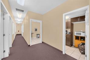 Inside, the property features 11 private offices, 2 kitchenettes, 2 washrooms, and a welcoming reception area—all laid out to support efficiency and workflow. Whether used for professional services, administrative offices, or specialty businesses, the configuration accommodates a wide range of commercial needs.
