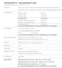 PROPERTY #1 (TWO BUILDING AND LANDS) $180,000: 4,991 SF± ON 1.76 ACRES Building 1 – Office/Shop (2,080 SF±) The office portion includes three offices, a two-piece bathroom, and a kitchenette, all finished with tile or laminate flooring, painted drywall walls and ceilings. The shop area offers open-span space with a 16 ft.± clear height, 16’ grade level overhead door. A mezzanine level—partially unfinished—adds additional storage workspace