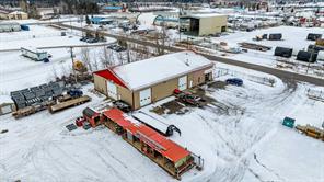 The Perfect Property for Your Business! This exceptional 2.29 acre commercial property offers the loads of space and versatility for a wide range of business uses. With two large standalone shops, a spacious yard, and a fully equipped one-bedroom suite, this property is ready for immediate use. The main building, approximately 6,000 sq ft and built in 1996, features a bright reception area, three offices, and one bathroom on the main floor. The office/showroom main floor is 60'x30' and shop portion is 70'x30'. The rear section includes a large working shop with three overhead doors, two radiant heaters, and two additional office spaces — all under a durable metal roof. Upstairs, you’ll find a spacious onebedroom suite that’s perfect for on-site living or employee accommodations including a developed living-room, bedroom, kitchen, 3 piece bath, and washer/dryer area. The second shop offers even more versatility with four large bay doors. One bay features a poured concrete floor, heating system, and a bathroom, while the remaining three bays provide dry gravel-floored storage for vehicles and equipment. The second building construction started sometime in 2002 and was completed sometime in 2004. The warehouse is 10,240 square feet. The yard is fully fenced and crossfenced, offering both paved and gravel surfaces for parking and maneuvering. Additional outbuildings include two enclosed sheds and a large open pole shed, providing ample space for storage or expansion. With excellent access, functional layouts, and extensive yard space, this property is move-in ready and perfectly equipped to support your business operations.