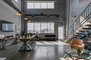 Exclusive turnkey industrial condo, ideally located 2 minutes north of Stoney Trail. Priced WELL below current market replacement cost. If you are serious about purchasing a luxury lifestyle industrial condo, this unit is worth consideration. In addition, this condo works very well as a functional and creative business workplace with an open space networking office with functional warehouse. The high attention to detail is evident in the construction and finishes throughout: steel and concrete second floor, multiple A/C and heating units, double compartment sump, custom cabinetry, custom floating stairs, executive washroom w/ shower, unique wall finishings, epoxy floor warehouse...the list goes on. All existing furnishings negotiable. Tours encouraged and available upon request.