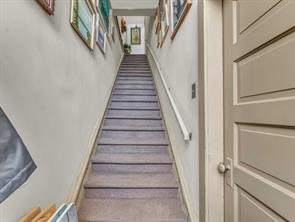 The upper level boasts 1,184 sq ft of thoughtfully renovated living space, including a spacious kitchen with full appliance package, 4-piece bathroom, in-suite laundry, updated windows, and a newer skylight. High 9-foot ceilings and tall windows fill the suite with natural light, highlighting its timeless character and warmth.