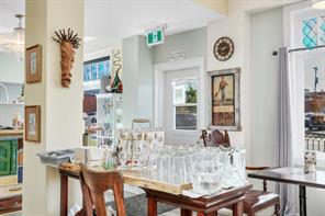 Here is a beautifully restored historic property offering both commercial space and a residential suite in the vibrant heart of downtown. Currently operating as a successful restaurant/cafe specializing in lunches and special events with approval from Alberta health Services, and includes a liquor license. It is Ideally located on a revitalized, high-traffic street, this distinctive building blends timeless character with extensive modern upgrades, creating exceptional flexibility for business, investment, or personal use. The main floor presents an inviting commercial space ready to bring your entrepreneurial vision to life by continuing with the restaurant or another business. There are four bathrooms in tota! Upstairs, you’ll find a fully renovated studio-style suite designed with both comfort and functionality in mind. The upper level features two bathrooms, a warm and welcoming living area, and private access to a deck, patio, and raised garden beds which are perfect for relaxing or entertaining. With a simple window modification, the suite could easily be reconfigured into a one- or even two-bedroom residence, adding further versatility and value. Significant upgrades completed in 2023/2024 provide peace of mind and long-term confidence, including new sewer and water lines, updated plumbing and electrical, furnace and air conditioning, new flooring, framing and drywall, fire door and front door, eavestroughs, and more. The exterior has also been thoughtfully enhanced with new fencing, refreshed landscaping, additional garden space, and beautifully constructed decks. With its seamless blend of historic elegance and modern improvements, this property may also qualify for historic preservation grant opportunities an added benefit for investors and business owners alike. There is plenty of space on to 50’ x 120’ lot for parking at the with the option of a garage to be built in the future.Whether you’re looking to establish your business in a thriving downtown setting, generate rental income, or enjoy the convenience of living and working in one dynamic location; you won’t want to miss this opportunity.