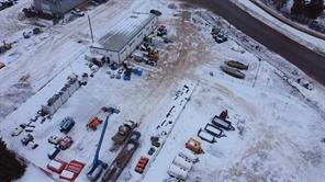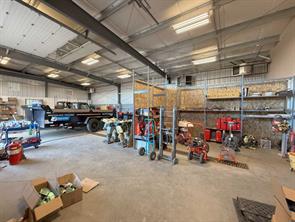 Prime location with maximum exposure on two intersecting highway routes through town. Just over 3400 sq ft, metal frame and siding with mono slope metal roof, built in 2012. 650 sq ft of office/storage space, 60 ft x 33.5 ft shop space, and 18.9 ft x 33.5 ft wash bay. Three 14 ft high x 14.5 ft wide doors, plus one 12 ft high x 10.5 ft wide. Zoned industrial, yard is completely fenced for secure outdoor storage. If more land is required, the adjoining vacant lot is also available for sale.