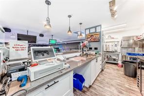 Prime commercial location just off Highway #1. This 2,000 sq ft main floor plus 600 sq ft mezzanine commercial condo is currently set up as an arcade entertainment venue with licensed alcohol service and concession/bar area.