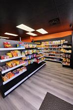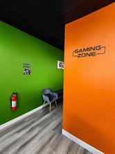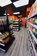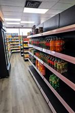 This modern retail space features an attractive new buildout with vinyl flooring, updated lighting and fixtures, a retail counter system, shelving, security camera setup, and a dedicated game station area with TVs and PlayStation, creating a welcoming and functional customer environment. The layout also offers additional rear space that can be used for an office, storage, shelving, or other operational needs. The premises include two display fridges and one freezer, making it well-suited for continued convenience retail use.