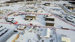 For Sale · 4.74+/- Titled Acres in a fenced & gated industrial parcel just west of Sundre, AB. Property boasts a 7,440 +/- sq ft heated Shop #1 with an attached axillary building that has a washroom, utility room, office, & mechanical bay. Building has 4 (20’x20’ doors) & 1 (30’x30’ door) on south end & an overhead crane. Property has an administrative office,which is 1579 +/- sq ft & contains 6 office spaces, meeting room, reception area, print area, staff lounge & washroom. There are two other large shops on property. Shop #2 is +/- 2400 sq ft & has 2 (20’x20’ doors) & is not presently heated, it also has an overhead crane. Shop #3 is formed by 12 sea cans utilized as sidewalls & is +/- 4800 sq ft plus +/- 1280 sq ft in 3 tiers of seacans & is not heated. One sea can is accessible from the interior of building & two are accessible from west side of building. The other sea cans are only accessible from end doors. There is also a concrete block & containment area, which is about +/- 1440 sq ft. suitable for storing shavings, soil, or equipment. Opportunity & entrepreneurism awaits. Potential for leasing.