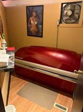 3 tanning beds (2 laydown and 1 standup), hair salon chair, sink and counter with mirror, body piercing equipment, washer, dryer, counter and many retail displays.