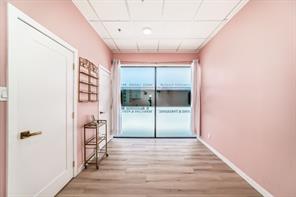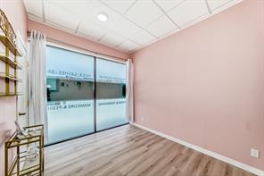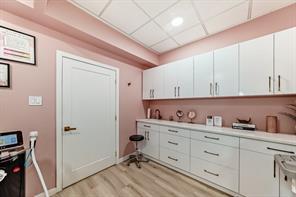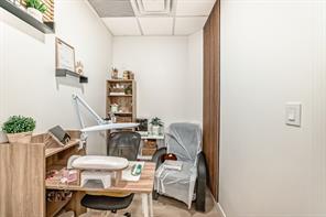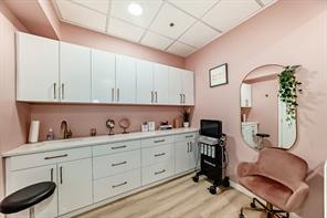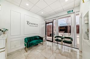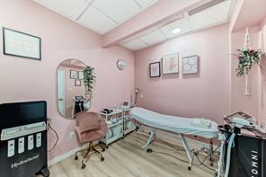 Turn-key professional commercial condominium unit with full clinical infrastructure. Currently operating as an established aesthetics clinic, this impeccably maintained 1,060 square foot suite presents a rare opportunity for medical, wellness, or high-end aesthetics users seeking a fully built-out space. Positioned along the high-exposure Centre Street NW corridor, the unit has been thoughtfully designed to support multiple practitioners while maintaining a refined, boutique atmosphere. The layout features eight private treatment rooms, each equipped with its own sink; an extensive and costly infrastructure upgrade. The space is anchored by a polished front reception and client waiting area that delivers a strong first impression. A central hallway provides efficient circulation, complemented by a private two-piece bathroom and a dedicated laundry and utility room to support daily operations. Dual access points enhance functionality, with a welcoming front entrance for clients and a separate rear exit ideal for staff and deliveries. Two assigned underground parking stalls are included, offering added convenience in this highly accessible inner-city location. This is a rare opportunity to secure a fully plumbed, high-density professional space in a prime Calgary corridor, with immediate usability and long-term flexibility.