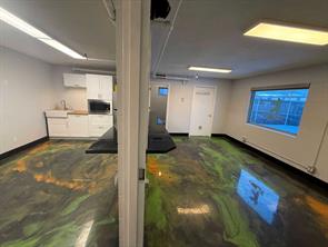 This property offers a functional blend of shop space and a fully built-out office, ideal for small to mid-size industrial users. The shop is a steel quonset exterior with concrete foundation and includes a 12’ x 14’ drive- thru bay with convenient front and rear alley access. Recent interior renovations feature upgraded shop lighting, a refreshed reception area, modern offices, a new kitchenette, and a flexible boardroom or staff space on the finished mezzanine. The premises have excellent visibility and pylon signage opportunities, while offering the privacy and security of a fully fenced site with an integrated security system. Ideal for businesses seeking