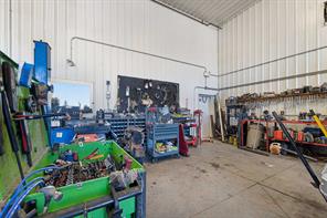 The site features a well-built, heated, and insulated 1,850 square foot industrial shop built in 2017 with 18-foot ceilings, two 14-foot overhead doors, interior metal cladding, 8" concrete slab floor, 12,000-pound hoist, 5HP air compressor, central floor sump, dedicated shop washroom, ventilation, and overhead unit heater. The infrastructure supports heavy equipment, fleet vehicles, and wet-use operations, making it ideal for trades, fabrication, or transportation-related businesses.